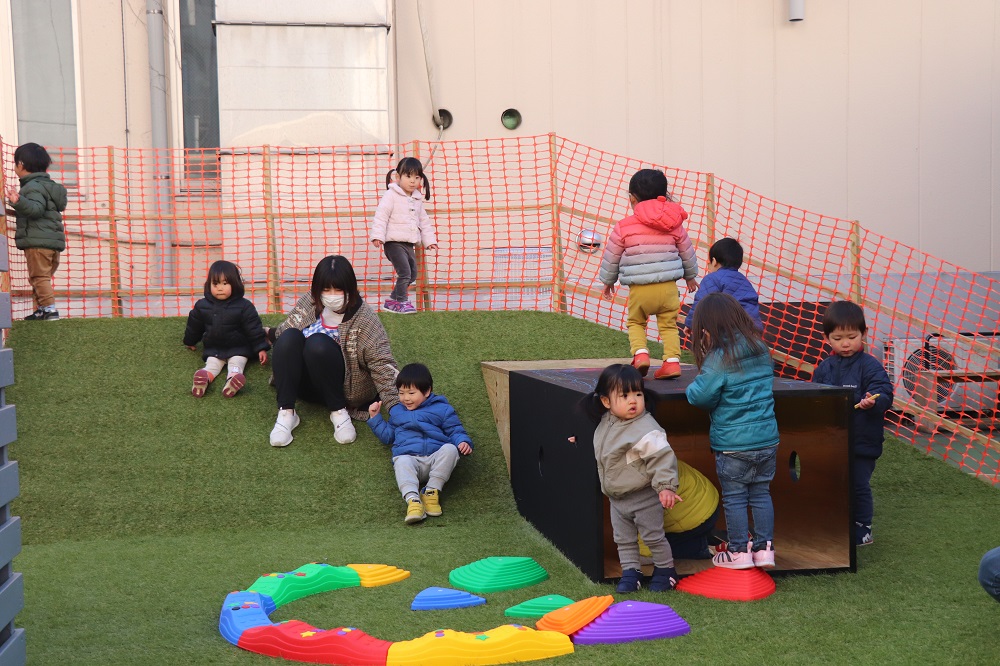 ‍ 広場は2022年2月に完成しました。しかし、当時はコロナの影響により千葉県にもまん延防止等重点措置が発令していたこともあり、オープンするか協議を重ねましたが、保育園にとっては遊び場に困っていることは変わらないため、オープンすることとしました。